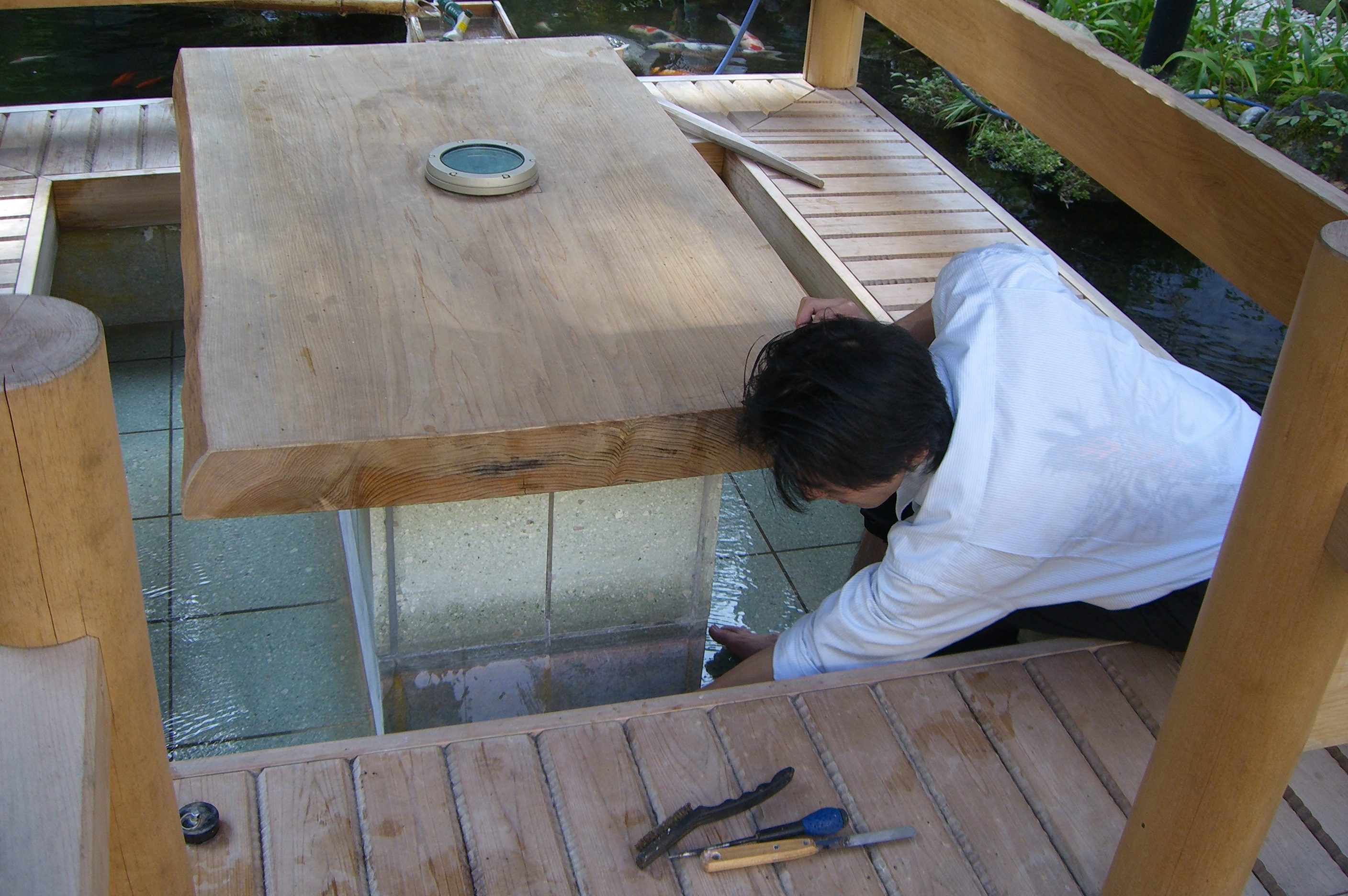 ご宿泊のお客様のご迷惑にならないように作業しております。
